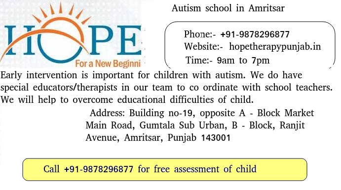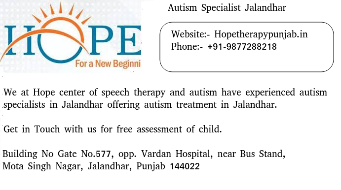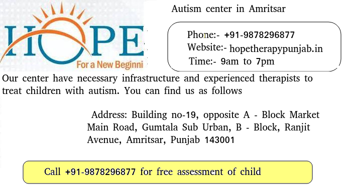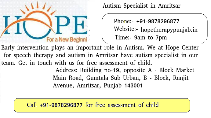 We at Hope Center for speech therapy and autism in Amritsar have autism specialist in our team, So if you are looking for autism specialist in Amritsar you can get in touch with us. You can contact us follows.